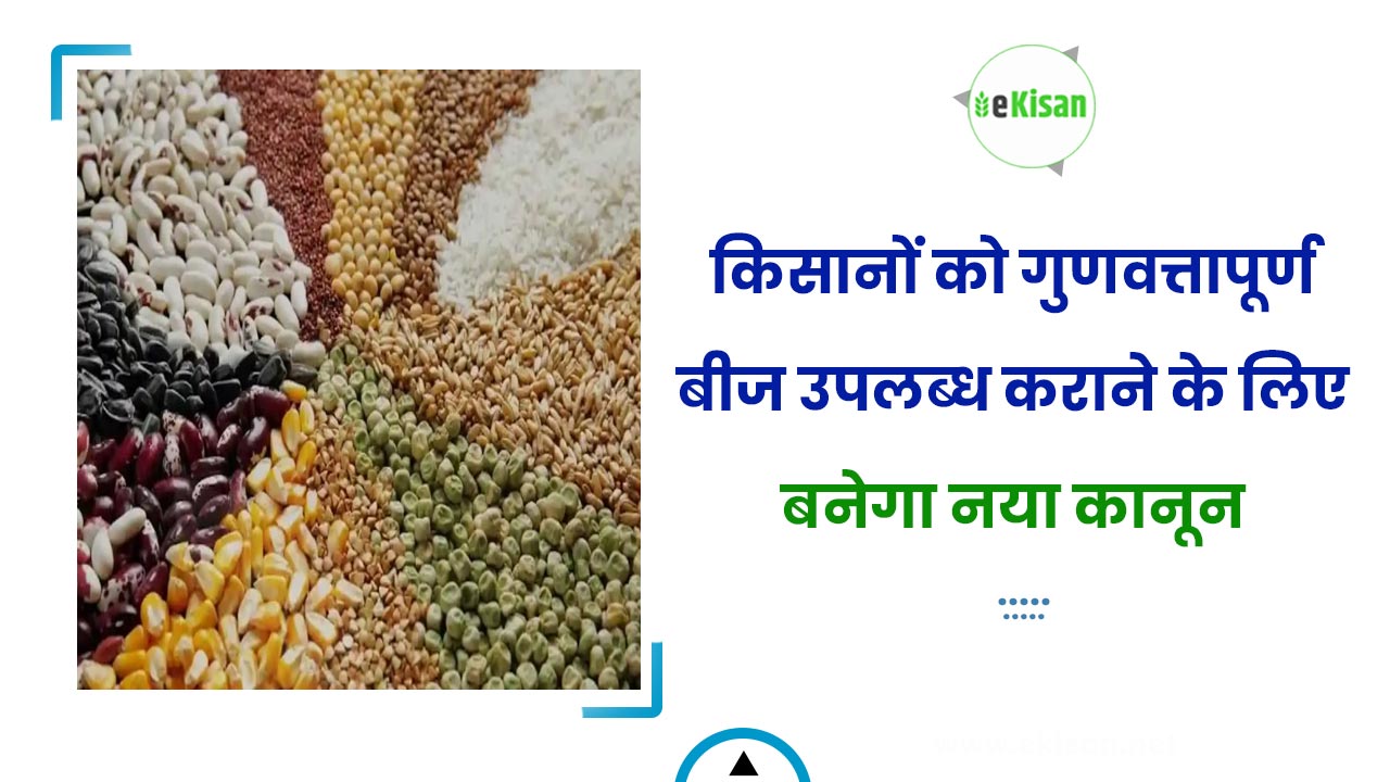 किसानों को गुणवत्तापूर्ण बीज उपलब्ध कराने के लिए सरकार नया कानून लाने जा रही है, इसके लिए कृषि एवं किसान कल्याण मंत्रालय द्वारा लोगों से सुझाव मांगे गए हैं।